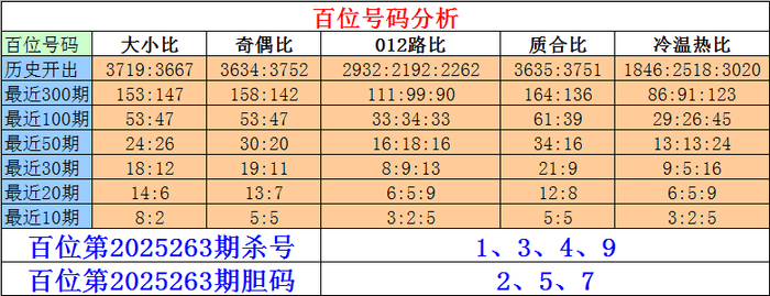 枚举三百位第2025263期杀号:1、3、4、9