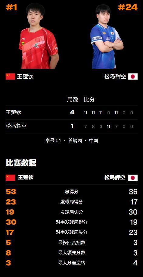 为好手足报仇!王楚钦4-1松岛辉空,男单四强国乒会剿全国第七